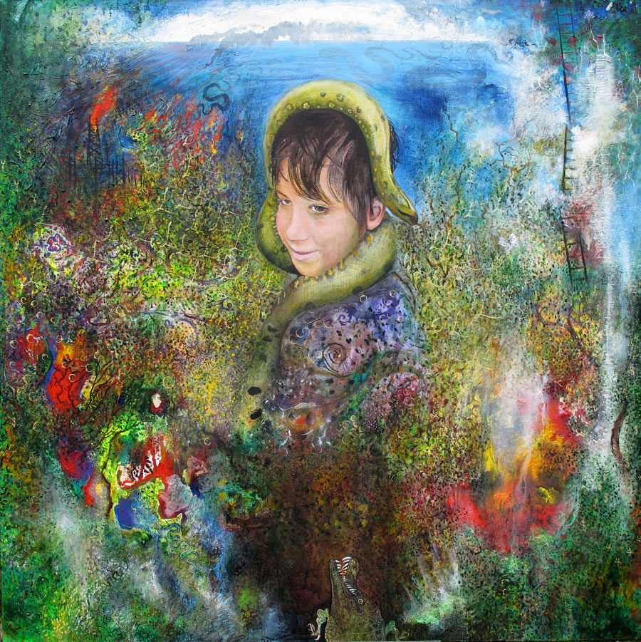 He takes a modern interpretation to this biblical theme, by including modern day warfare aeroplanes. By examining our current political landscape, he illustrates how war has led to the human expulsion from paradise. His artwork is embedded with symbolism, on how planes fly over our skies on a daily basis reminders of the destruction that occurs worldwide.